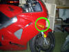 The brightness control is mounted on the inner fairing (where the forks go through). It's a bit tricky to turn on and off while cornering. It works very well, but I did have to sacrifice the laser detector part.